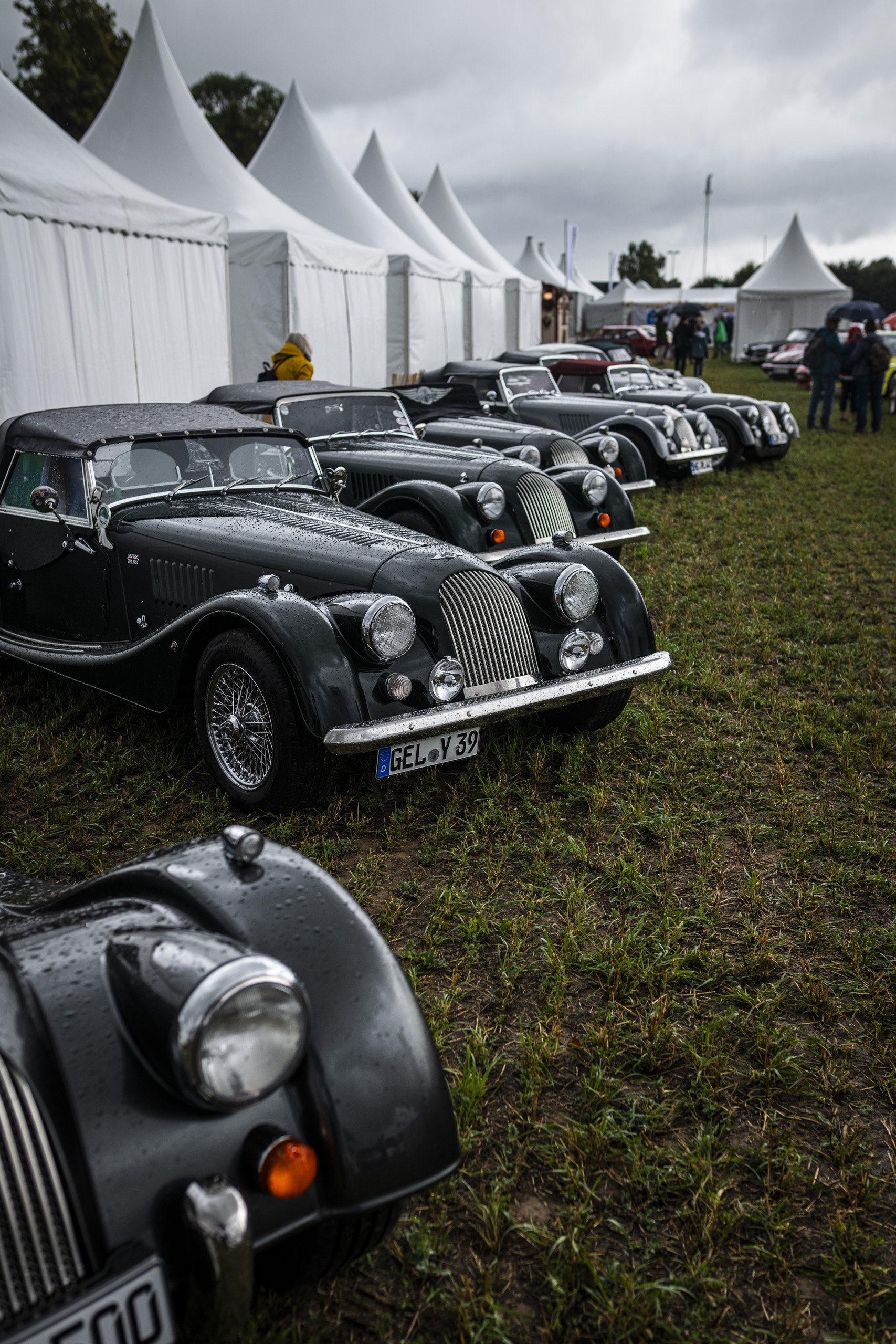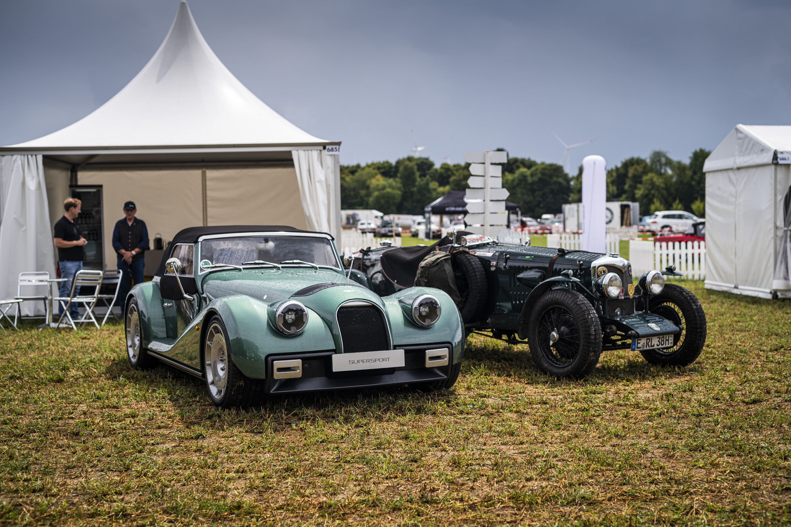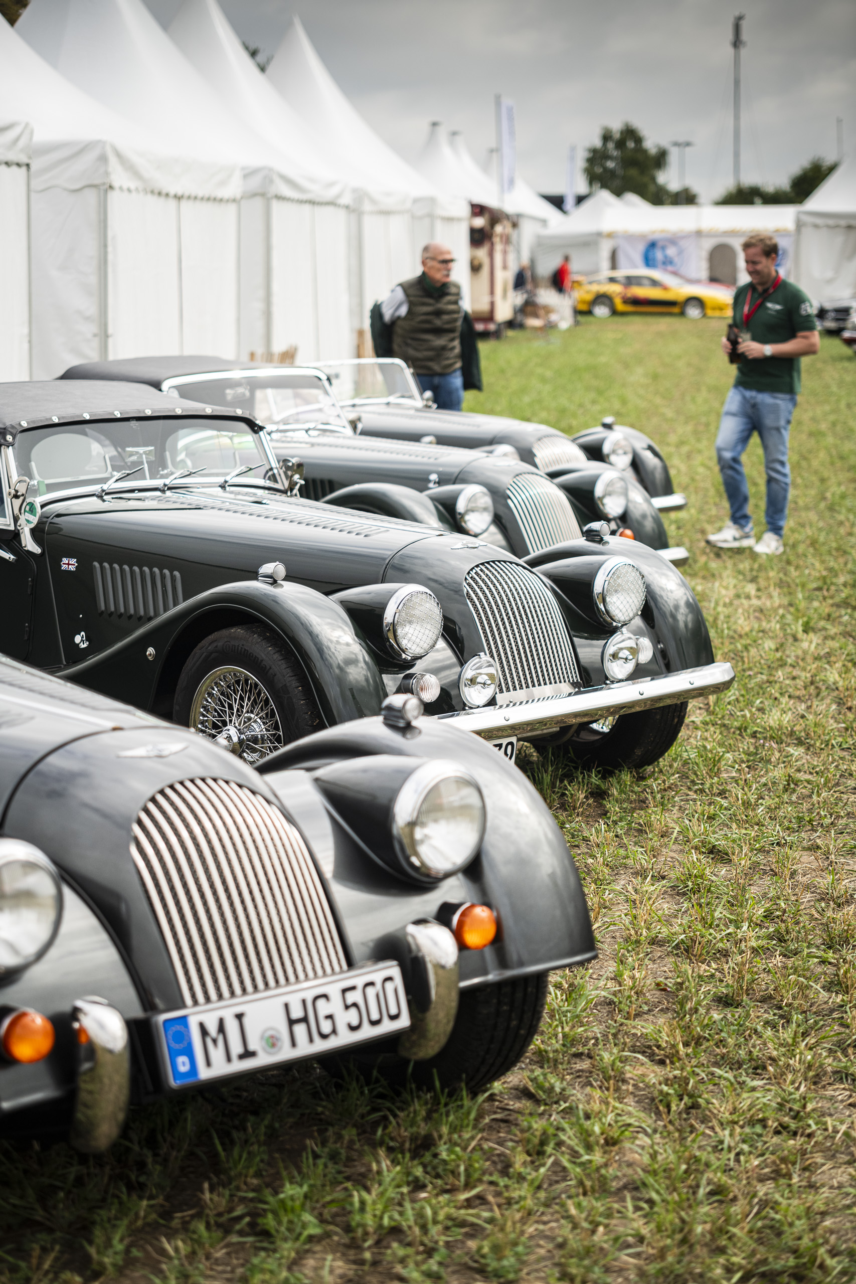 Im eigenen, geschmackvoll gestalteten Zelt konnten Besucher nicht nur einige der aktuellen Modelle der legendären britischen Manufaktur hautnah erleben, sondern sich auch bei einem kühlen Getränk über Geschichte, Technik und Zukunft der Marke informieren. Besonders beliebt: Die Parkfläche für MorganFahrer, die mit ihren eigenen Fahrzeugen stilvoll anreisten und direkt vor Ort in den abgesperrten Morgan-Bereich im Infield der Veranstaltung integriert wurden. Trotz des anfangs sehr bedeckten Wetters folgten etliche Morgan & Oldtimer-Enthusiasten der Einladung.