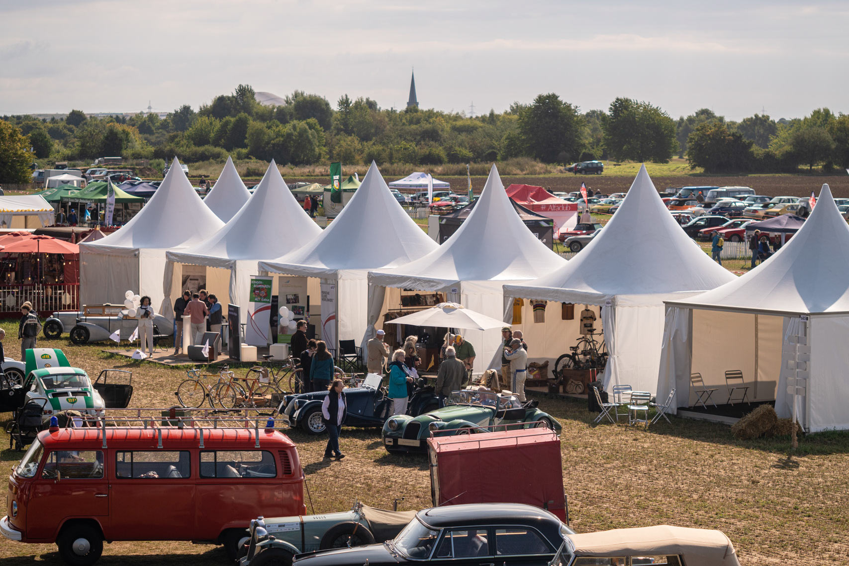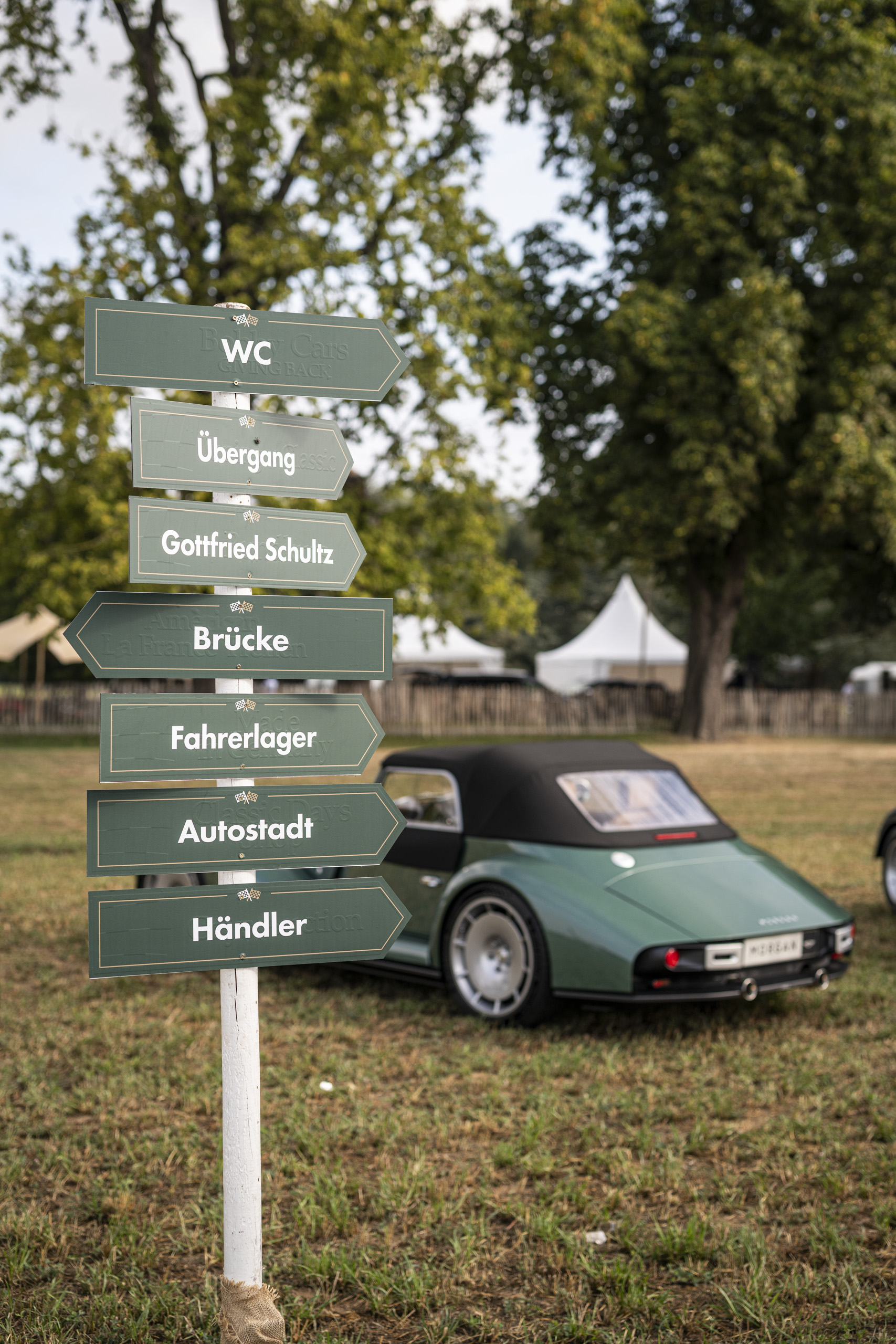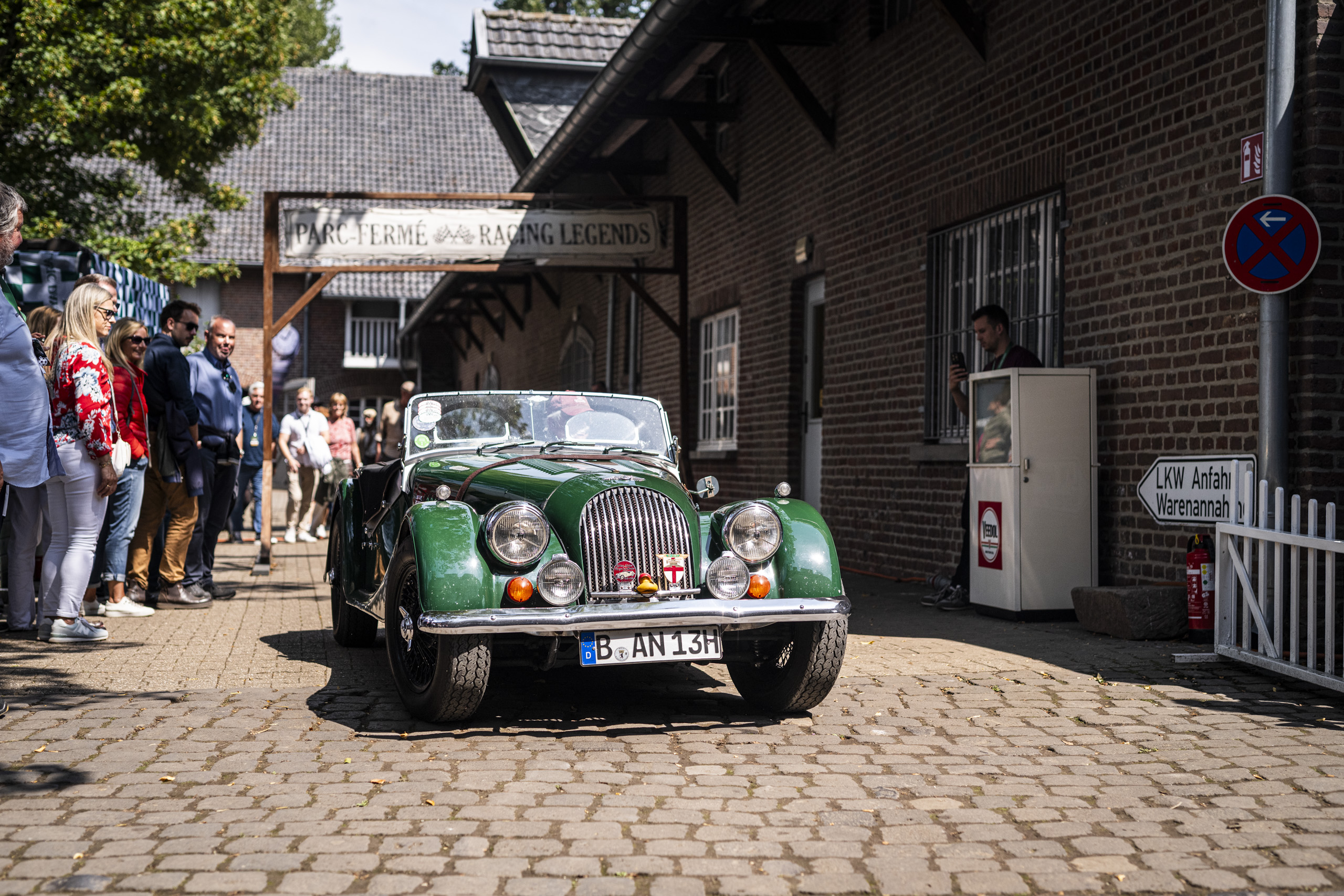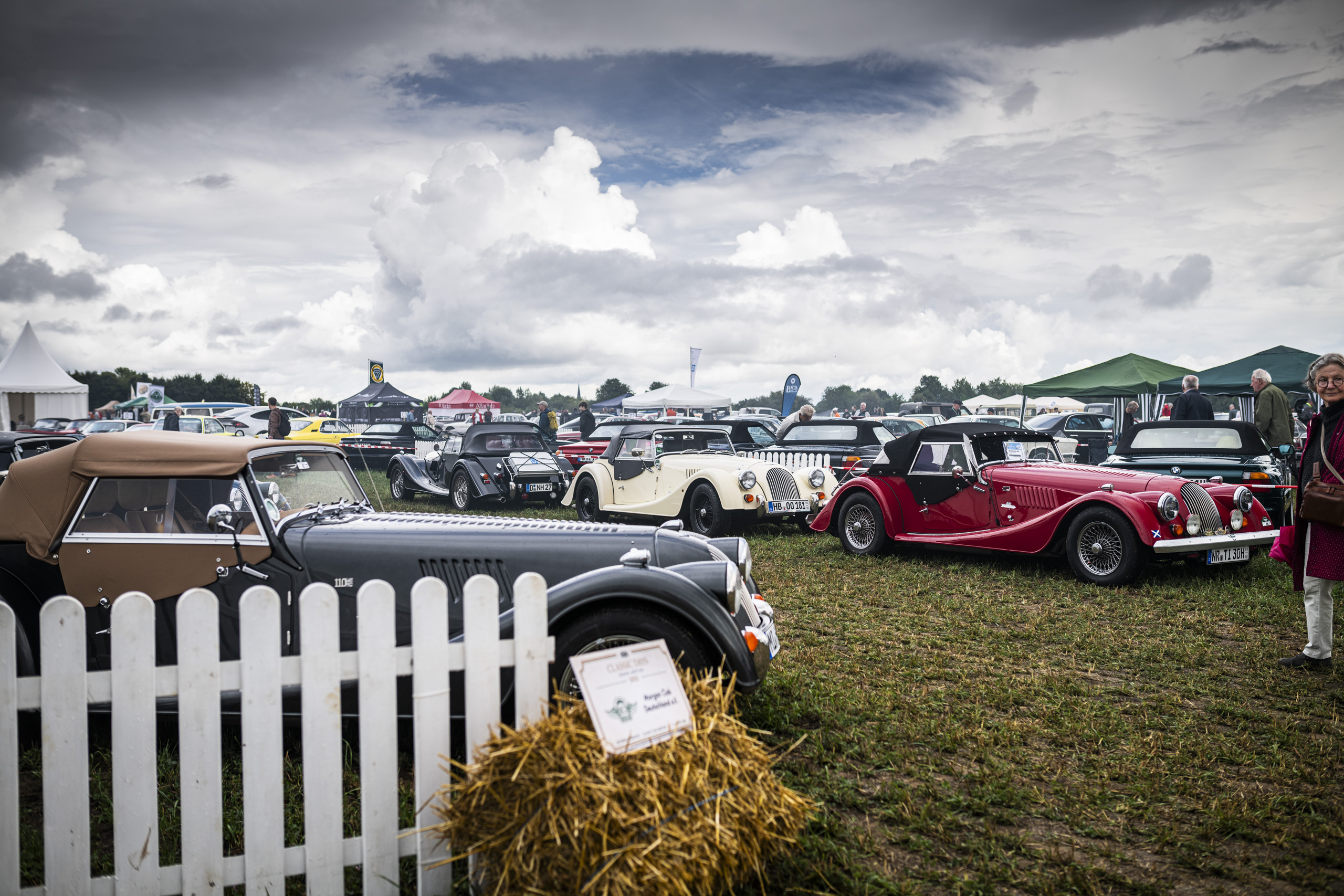Im eigenen, geschmackvoll gestalteten Zelt konnten Besucher nicht nur einige der aktuellen Modelle der legendären britischen Manufaktur hautnah erleben, sondern sich auch bei einem kühlen Getränk über Geschichte, Technik und Zukunft der Marke informieren. Besonders beliebt: Die Parkfläche für MorganFahrer, die mit ihren eigenen Fahrzeugen stilvoll anreisten und direkt vor Ort in den abgesperrten Morgan-Bereich im Infield der Veranstaltung integriert wurden. Trotz des anfangs sehr bedeckten Wetters folgten etliche Morgan & Oldtimer-Enthusiasten der Einladung.