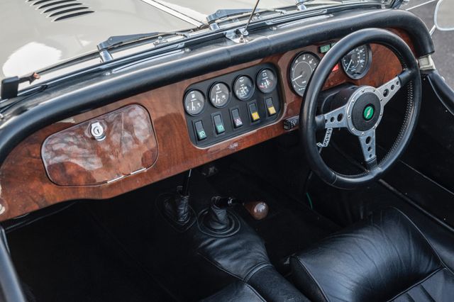 Wir bieten in Kundenauftrag diesen Morgan 4/4 Four Seater mit kernigen 4-Zylinder 1.6l CVH Motor von Ford an. Dank des Weber Registervergasers leistet der Motor 96PS. Bei ca. 800kg Leergewicht ist der 4/4 keineswegs untermotorisiert. Das Fahrzeug ist ursprünglich in Großbritanien ausgeliefert worden, daher befindet das Lenkrad auf der rechten Seite, seit 2017 ist er aber in liebevoller Hand seines ersten Besitzer in Deutschland.