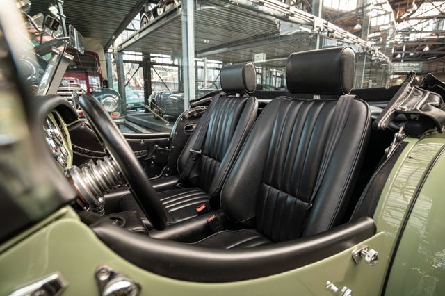 Erleben Sie britische Handwerkskunst in ihrer reinsten Form mit diesem seltenen Narrow Body Morgan Plus 4 aus dem Jahr 2014. Gehalten in pastelligem Grün mit schwarzem Lederinterieur, verkörpert er zeitlosen Stil und Fahrvergnügen. Der moderne, 156 PS starke FORD Vierzylinder-Benzinmotor mit 1.998 ccm Hubraum bietet sportliche Leistung, während das manuelle Mazda MX-5 Getriebe und der Heckantrieb für ein authentisches Fahrerlebnis sorgen.
