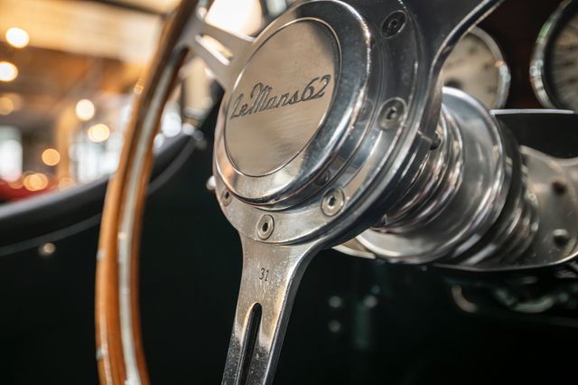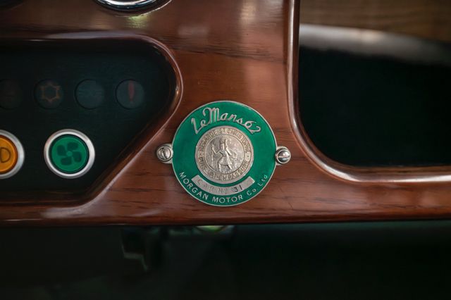 TOK 258 dürfte jedem Morgan-Enthusiasten ein Begriff sein. Das war die Registrierung des Morgan Plus 4, mit dem Christopher Lawrence und Richard Shephard-Baron 1962 beim sowohl berüchtigten, als auch prestigeträchtigen LeMans 24-Stunden-Rennen (in einem Feld mit Ferrari 330 TR & 250 GTO) in der 2-Liter Touring Klasse den Sieg einfahren konnten. Das Fahrzeug trug die Startnummer 29 und war selbstverständlich Grün – eine Tradition die in den Anfangsjahren des Motorsports ihren Ursprung hat - und mit einem Ivory lackierten Hardtop ausgestattet. Zum 40-jährigen Jubiläum des Sieges entwickelte die Morgan Motor Company auf Basis des Plus 8 und 4/4 eine Sonderedition, die dem Le Mans Siegerfahrzeug nachempfunden war – das Sondermodell Le Mans 62 war geboren. Seinerzeit übrigens das erste Sondermodell in der damals 93-jahre jungen Firmenhistorie. Limitiert auf nur 40 Plus 8 und 40 4/4 weltweit, begeistert diese Sonderedition mit viel Liebe zum Detail. Selbstverständlich muss der Plus 8 grün sein und mit einem Ivory Hardtop. Das Heck ziert ein eigens für diese Serie kreiertes Modellemblem. Im Cockpit fallen als erstes die Teppiche mit dem grünen Le Mans 62 Schriftzug auf und das Holzlenkrad mit polierten Speichen. Zentral blickt der Fahrer hier auf seine individuell gravierte Editions-Nummer – in unserem Fall die #31. Die Nummer findet sich auf einer liebevoll gestalteten Plakette am Holzarmaturenbrett nochmals wieder. Neben dem Schriftzug der Morgan Motor Company Ltd. und Le Mans 62 zeigt die Plakette das Bild des heiligen Christoph – dem Schutzpatron der Autofahrer – und dem Motto „Regarde St Christophe puis va-t'en rassuré“ – Erblicke den heiligen Christoph und gehe sicher deinen Weg. Das hier angebotene Fahrzeug wurde neu durch uns ausgeliefert, präsentiert sich in einem gepflegten technischem und optischen Zustand und stellt eine super seltene Gelegenheit dar, einen Plus 8 LeMans kaufen zu können. Hier nochmal seltener, da aus Erstbesitz und mit vollständiger Historie. Natürlich wurde 2002 das ganz wichtige, vollumfängliche LeMans-Paket montiert als auch das Wetterpaket - bestehend aus Steckfenstern, Verdeck und Persenning - dazubestellt.