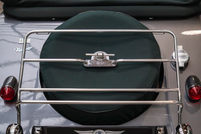 Wir bieten im Kundenauftrag diesen geschmackvoll gestalteten Morgan Roadster V6 3.7 an, mit seinem kraftvollem, verlässlichen Ford Motor - bekannt aus u.a. dem Mustang. Zusätzlich trugen alle 2019, also im 110. Jahr der Morgan Motor Company, produzierten Fahrzeuge ein besonderes Emblem - hier angebracht am Heck. Der Roadster ist lackiert in BMW Mineralgrau metallic und steht auf polierten 16" Edelstahlspeichenrädern. Edelstahl wurde großzügig verwendet. Das Fahrzeug zieren Stoßstangenhörner in VA vorn und hinten, ein polierter Kühlergrill in VA, eine Badge-Bar in VA, Positionsleuchten auf den vorderen Kotflügeln und am Heck eine Gepäckbrücke in VA. Für einen Farbkontrast sorgt das Verdeck aus grünem Mohair Stoff. Die Farbe wird ins Cockpit getragen durch Yarwood Leder im Ton Lincoln Green und schwarze Teppiche mit grünem Keder. Besondere Details stellen z.B. die mit Leder bezogenen Türschloßabdeckungen, die Lenksäulenverkleidung und die Türkartentaschen dar. Auch im Interieur wurde nicht auf Edelstahl verzichtet. Der Türfang, gravierte Quertraversenabdeckungen und ein Moto-Lita Holzlenkrad mit polierten Speichen werten das Interieur auf. Ein weiterer Blickfang ist das Walnussholzarmaturenbrett mit Handschuhfach. Für gesteigerten Reisekomfort sorgen eine Servolenkung, ein CD-Radio mit USB-Anschluß und Sitzheizung für Fahrer und Passagier. Das Fahrzeug wurde ursprünglich über Morgan Flaving ausgeliefert. Über die Jahre war der Roadster auch regelmäßig in unserem Hause beim Service.