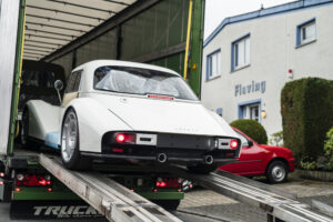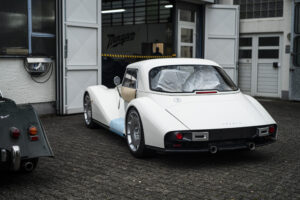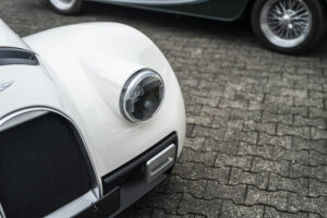 Nach und nach können die ersten Kunden ihren neuen Morgan Supersport übernehmen. Das erste Kundenfahrzeug, welches seinerzeit noch unter dem Arbeitstitel „Project 26“ als sogenanntes „First Glance“ Editionsmodell bestellt wurde, kam Anfang August aus dem Werk in Malvern Link zu uns nach Unna. Nach der Auslieferungsinspektion konnte das perlmuttweiße Fahrzeug an den glücklichen Besitzer übergeben werden.